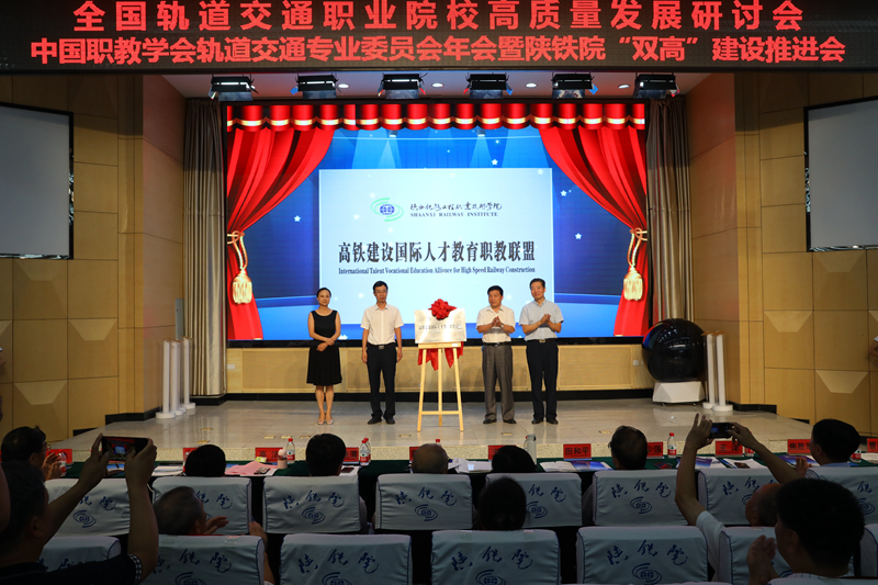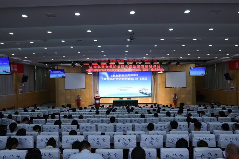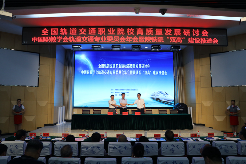 为进一步贯彻落实国家“双高计划”建设文件精神,深化产教融合、校企合作,推动轨道交通职业院校高质量发展和中国特色高水平高职学校建设进程。7月10日,由中国职业技术教育学会轨道交通专业委员会主办,陕铁院承办的全国轨道交通职业院校高质量发展研讨会、中国职教学会轨道交通专业委员会工作年会、陕铁院2020年“双高”建设暨“政行企校”共建陕铁院双高校推进会在学校高新校区博爱厅召开。“双高计划”建设咨询委员会主任委员黄达人,陕西省委教育工委委员、省教育厅副厅长朱晓渭,渭南市人民政府副市长高洁,中国职业技术教育学会轨道交通专业委员会主任委员王虹,中铁一局集团有限公司副总经理兼总工程师安国勇,中铁二十局集团有限公司副总经理兼总工程师任少强,省教育厅职业教育与成人教育处副处长周杰,来自全国22所轨道交通类高职院校,20家企业单位,共计百余名领导、专家和老师,以及《陕西日报》、渭南电视台等主流媒体出席了大会。学校领导、处科级干部、各院(部)专任教师400余人参加了大会。大会分三个阶段,分别由郑州轻工业大学副校长苏东民、王虹、学校党委书记王晖主持。
