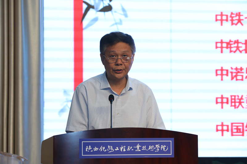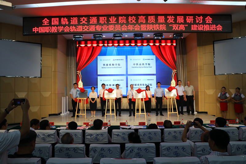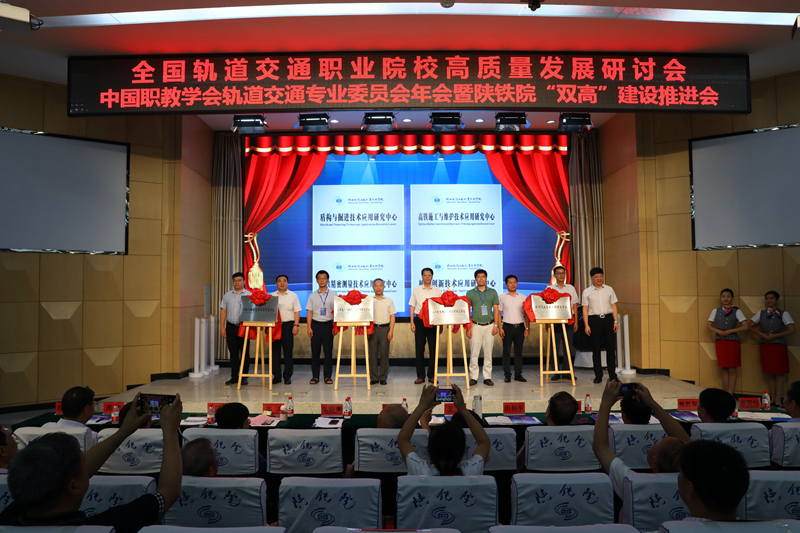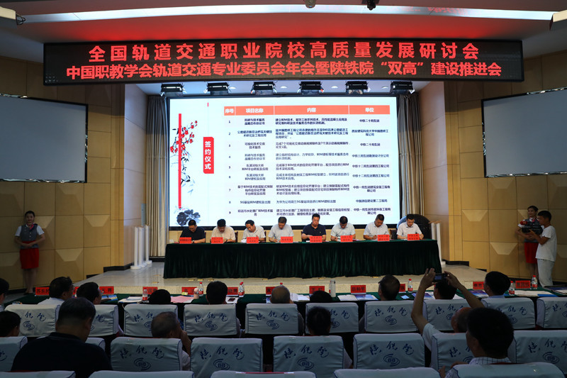 陕铁院在创新服务平台建设中,搭建了“产业学院-创新服务平台-技术应用研究中心”组织架构。学校聚焦高铁高端产业、城轨产业高端和铁路产业技术升级,面向铁路运营维护、工程施工、装备制造领域,对全校42个专业进行组群布局,按照“以群建院”理念,成立了高铁工程、城轨工程、测绘与检测、道桥与建筑、工程管理与物流、铁道运输、铁道动力、铁道装备制造等八个二级学院。依托学校组建的陕西铁路建筑职教集团,各二级学院与企业共建产业学院,联合成立一批技术应用研究中心。会上,举行了陕铁院“双高”建设校企合作签订协议仪式,陕铁院产业学院、技术研究中心等揭牌仪式。仪式上,学校与中铁一局、中铁二十局签订了科研与技术服务战略合作协议书,与西安建筑科技大学、中国路桥、中铁二十局信息管理部、中铁三局勘测设计分公司、中铁十二局四公司、中铁一局建筑安装公司、陕西神渭煤炭管道运输公司、中铁七局西安公司签订了技术服务、社会培训协议。