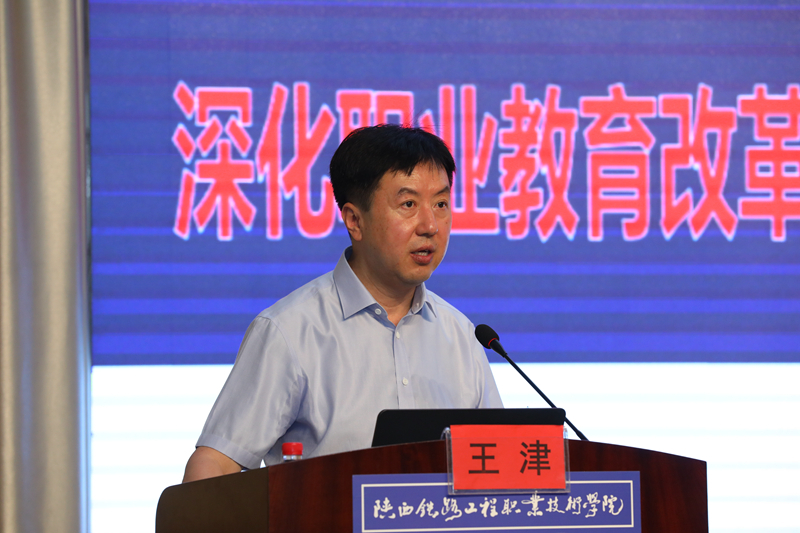 在“双高”建设专题会议中,陕铁院校长王津以《高起点设计、高标准建设、高质量落地》为题,从三个方面作了陕铁院“双高建设”报告。一是在充分认识双高背景与基础上,如何讲好陕铁故事;二是面对双高困惑与挑战,怎样发挥陕铁智慧;三是探索双高内涵与路径,实施陕铁方案。王津讲到,建成双高校是陕铁院发展的必由之路,学校要以“双高计划” 为契机,深化产教融合、校企合作,聚焦内涵发展,着力提档升级,推进学校高质量发展。王津表示,“双高计划”蓝图已绘制,号角已吹响,学校全体教职员工将不忘初心、牢记使命,以高度的政治责任感,以主人翁的姿态、以舍我其谁的担当、以争先创优的精神全力做好各项工作,凝心聚力,砥砺前行,全面推进中国特色高水平高职学校建设。