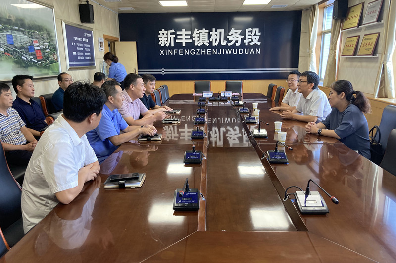 为深入推进产教融合,加强校企合作,促进双高建设任务进度,8月14日上午,学校副校长蒋平江、铁道动力学院院长姜留涛、铁道动力学院副院长李晓艳等一行4人赴西安局集团新丰机务段洽谈校企合作事宜。新丰机务段段长刘凌飞、书记樊友红、副段长沙正军及各部门负责人等参加座谈会。