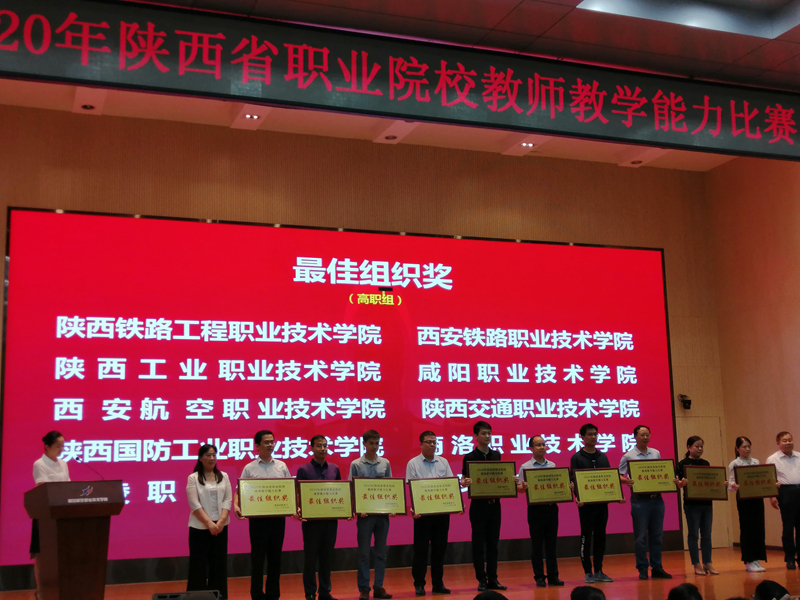 2020年陕西省职业院校教师教学能力比赛现场决赛于8月16日-18日在西安航空职业技术学院举办,学校推荐的9支参赛团队中7支入围现场决赛,经过激烈的比赛,学校参赛团队从34所高职院校、212支参赛团队中脱颖而出,获省级一等奖4项,二等奖3项,获奖质量全省高职第一,学校荣获最佳组织奖。
