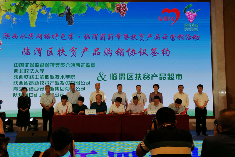 9月4日,陕西水果网络特色季·临渭葡萄节暨扶贫产品云营销活动在渭南建国饭店会议厅启动。活动以“增强临渭葡萄影响力、扩大临渭扶贫产品销售、助力脱贫攻坚”为主题,举办主题论坛、主题推介、购销签约、扶贫产品展销等一系列活动,旨在进一步提升陕果品牌,增强临渭葡萄影响力,扩大临渭扶贫产品销售,助力脱贫攻坚。学校党委(校长)办公室、工会、扶贫办公室部门人员参加本次活动。