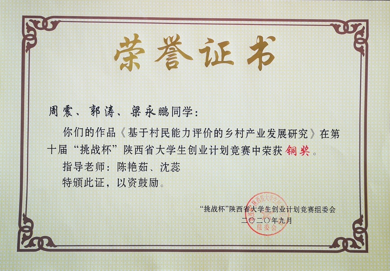 《基于村民能力评价的乡村产业发展研究》铜奖证书