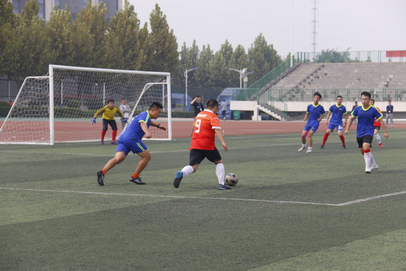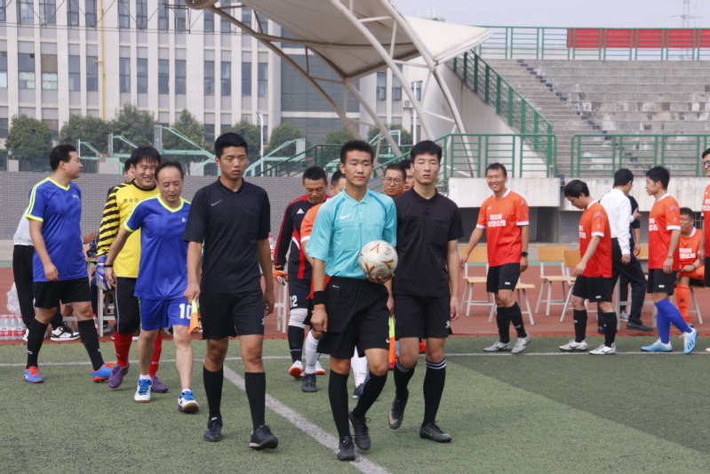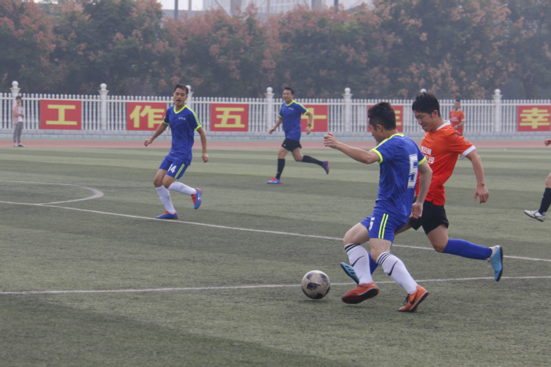 随着裁判员一声令下,西铁局高铁时代足球队踢出首球拉开了比赛的帷幕。赛场上,高铁时代足球队利用一次点球的机会率先破门,打出良好开局。上半场比赛西铁局高铁时代足球队配合娴熟,占据主动。下半场比赛学校教工代表队调整战术,利用巧妙的传切配合,从边路突破至对方禁区起脚大力抽射将球打进,踢入第一粒进球。随着比赛深入,双方球员渐入佳境,比赛愈演愈烈,双方各不相让,进攻、防守,你来我往,精彩纷呈,引起现场观众的阵阵欢呼。企业代表队脚法细腻,技巧娴熟,技战术经验丰富;学校教工代表队年轻活力,体能充沛,脚法精湛,也毫不逊色。场外学生也激情洋溢,纵情地为队员们加油、叫好,现场气氛十分热烈。最终西铁局高铁时代足球队5:3战胜学校代表队,比赛在轻松友好的氛围中画上圆满句号。