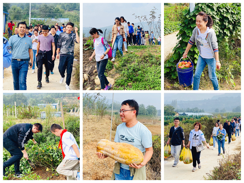 到了帮老百姓采摘环节,老师们更是认真细心,生怕自己的错误损坏了劳动果实,他们认真向农民同志学习劳动技巧,由一开始的慢,还经常出错,到最后的逐步娴熟,劳动效率也越来越高,当一筐筐蔬菜,一个个大南瓜被运到田头时,老师们脸上洋溢着灿烂的笑容。