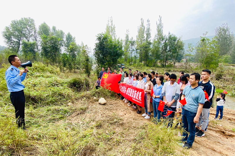 在沋河边,老师们聆听了支部书记王鹏同志做了“不忘初心,助力脱贫”的生动党课,王鹏同志从自己参加扶贫工作的感受谈起,他从党的脱贫政策好、徐韩村的新变化、扶贫干部的初心三个方面讲述了参与扶贫工作的教育意义和实践意义。老师们认真聆听、深受教育。党课后教师们高唱《歌唱祖国》,嘹亮的歌声在山间回荡,表达了老师为祖国颂歌的豪迈之情。