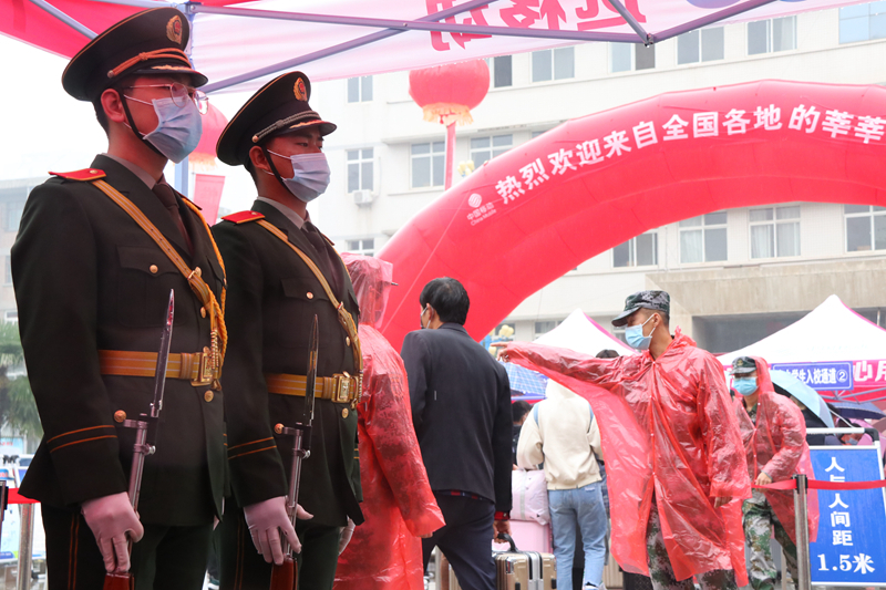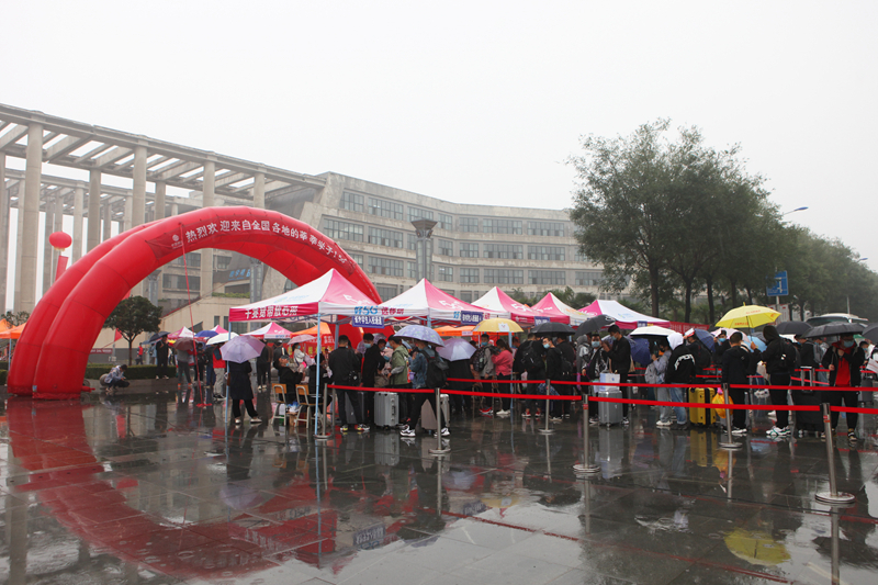 今年受新冠疫情影响,开学日期整整延后了一个月,为了防止人员聚集,做好疫情防护,学校疫情防控工作领导小组制定了适应疫情防控新形势需要的新生报到工作方案,设立了专门的核查和测温点,每一位入校的新生都要佩戴口罩,提供录取通知书和健康通行码,检验合格后再测温进入校园。学校以科学优化的流程严把校园安全关,入校的新生们自觉进行排队、测温和身份核验,现场秩序井然。