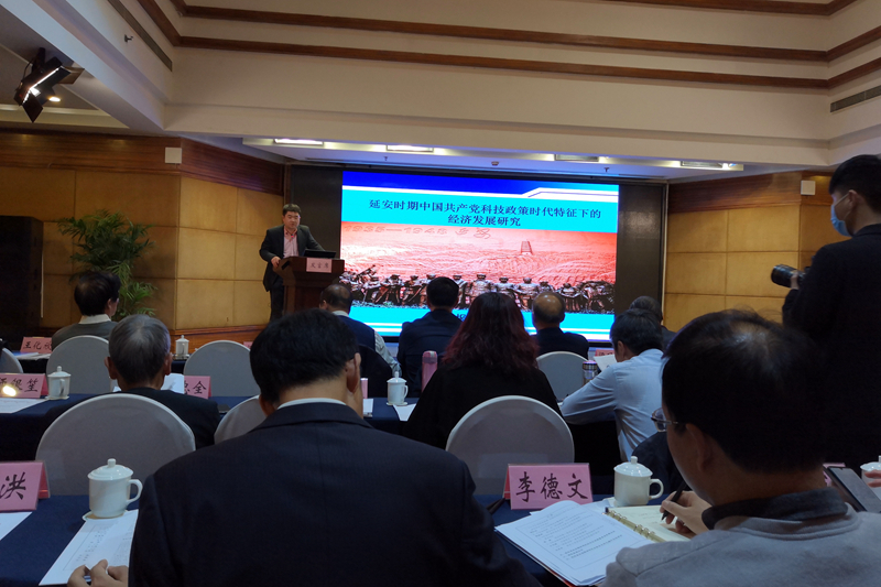 会上,张威作为获奖代表从论文的写作基础、思路、内容、方法、难点等五个部分同与会代表进行分享交流,将延安时期中国共产党科技政策的时代特征归纳为“广为战争服务、注重应用研究、强调自力更生、倡导人民科学”四部分,充分体现了延安精神的原生形态和时代价值。