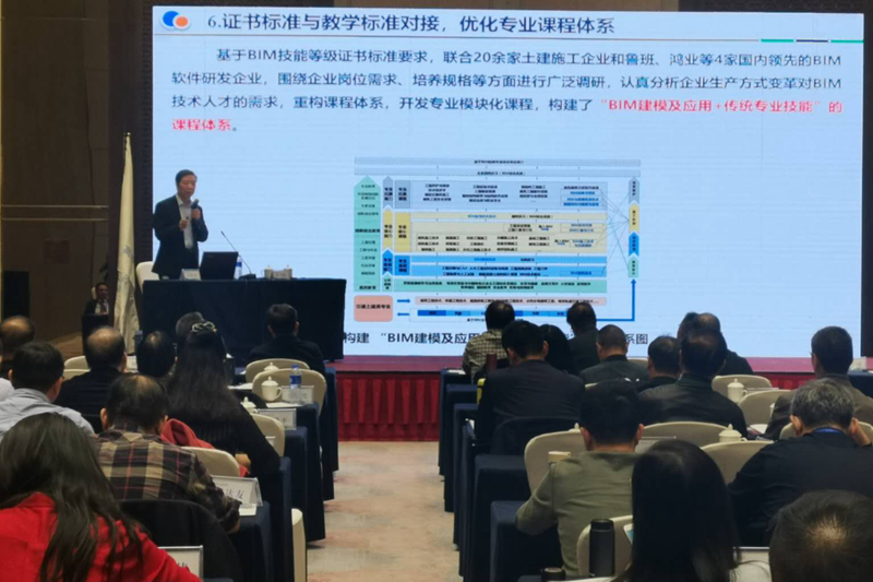 会上,焦胜军以《“三保障,三对接”,促进1+X证书制度落地生根》为题,分别从学院简介,1+X证书试点基础,试点工作创新方法和试点工作成效四个方面进行了经验交流。取得在场参会人员的热烈掌声,取得良好反响,表明学校1+X BIM证书试点方面已达到经验可推广,方法可复制,成果可交流的双高建设总体要求。