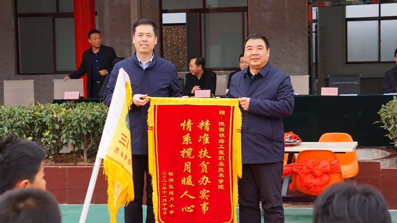 李学斌代表临渭区教育局对陕铁院的善举表示感谢,此次捐赠的餐桌椅、餐具为揽月小学全体师生解决了燃眉之急,为揽月小学的教育教学工作注入了新的活力。他讲到,近年来陕铁院在“双百工程”中结对帮扶临渭区,捐资助学,改善办学条件,资助贫困学生,为临渭区教育事业发展作出了巨大贡献。