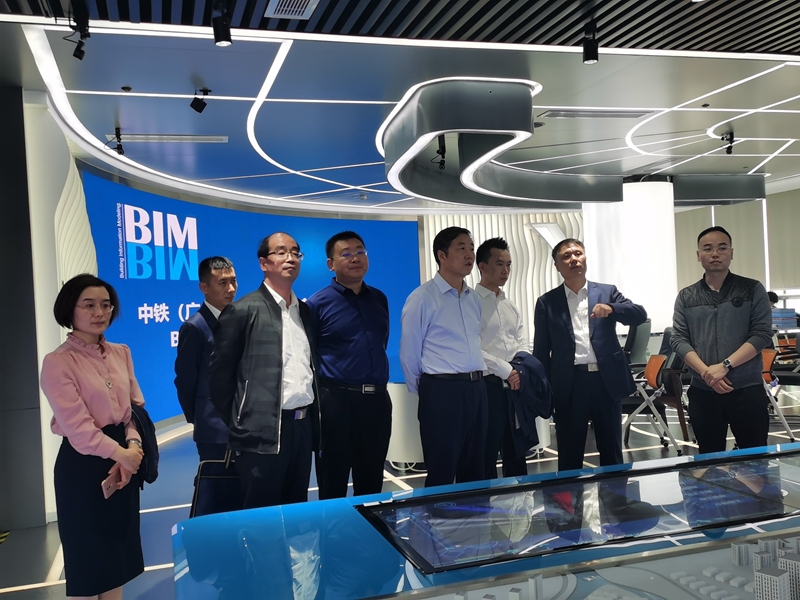 中铁(广州)投资发展有限公司总经理李仲峰(右二)带领焦胜军一行参观了公司BIM及信息化技术应用平台
