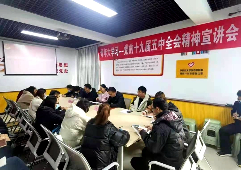11月26日,陕铁院马克思主义学院教师、渭南市委青年讲师团成员卢娇娇受邀为富平县镇(街)团(共)委书记、各学校团委书记、部分企事业单位团组织负责人作了题为《擘画新蓝图 开启新征程》的十九届五中全会精神宣讲报告。