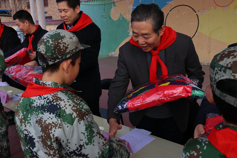 捐赠仪式上,厚厚的防寒服送到了孩子们的手中,亲切而温暖,让孩子们感受党的关爱,感受到陕铁院的善行义举。当天,学校向孝义镇中心校捐赠113套冬季防寒服,价值22600元。