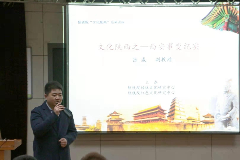 文以载道,以文化人!陕西传统文化和红色文化的宝库博大精深,是对学生进行思想政治教育和人文素质提高的有效载体,目的是通过加强学生对陕西传统文化和红色文化的学习和理解,形成中国式和陕西味的世界观、人生观、价值观,打好作为陕西人和合格中国大学生的亮丽底色,推动学生更热爱中国,热爱陕西。两个文化中心打造的“文化陕西”系列讲座,让陕铁院有了更多的三秦文化元素,秦人秦地秦味更加突出。(李崇智)