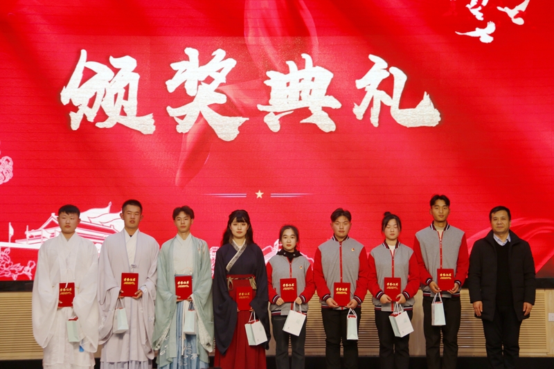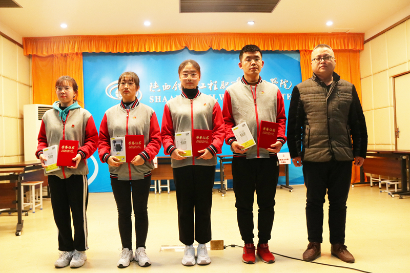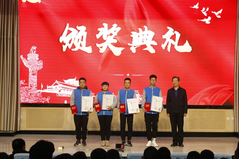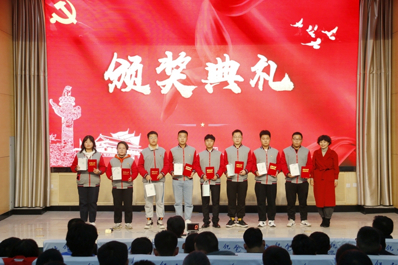 机关第一党总支书记、党委宣传部副部长张玉鹏为临渭校区二等奖学生颁奖