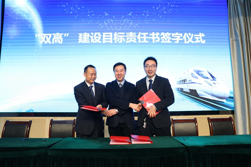 焦胜军校长与学校治理工作组、师资队伍建设工作组、经费管理与审计工作组和高速铁道工程技术专业群签订目标责任书