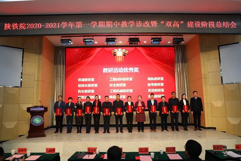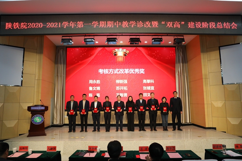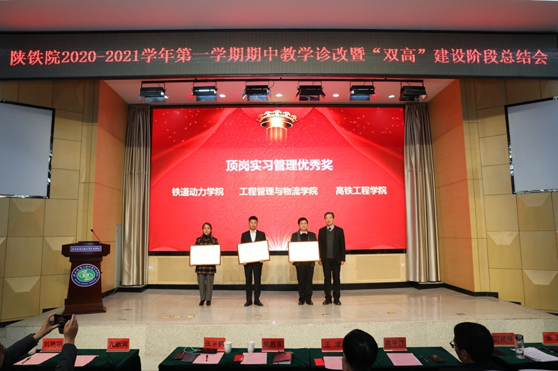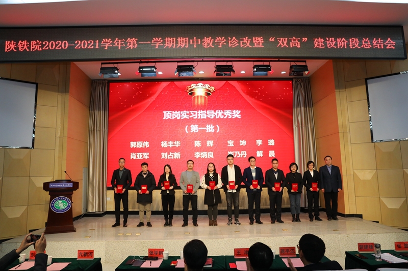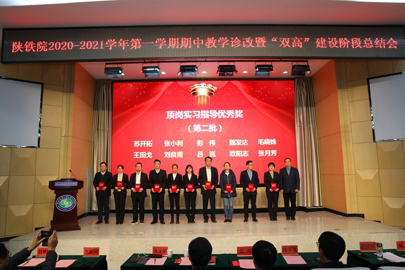 贺建锋副校长宣读了《关于表彰2020-2021学年第一学期期中教学诊断与改进优秀项目的决定》。大会对“教研活动优秀奖”“顶岗实习管理优秀奖”“考核方式改革优秀奖”“实践教学优秀奖”“顶岗实习指导优秀奖”等五个奖项的获奖集体及个人进行了表彰,与会领导为获奖代表进行了颁奖。