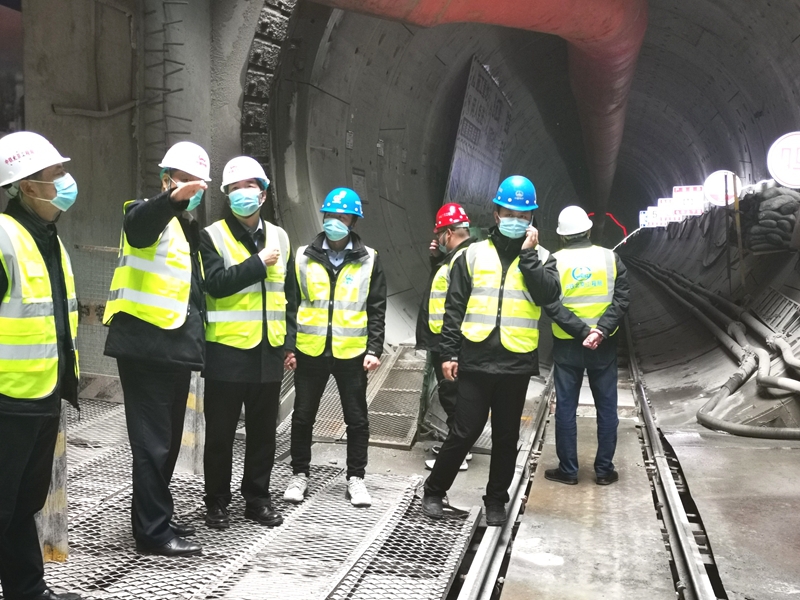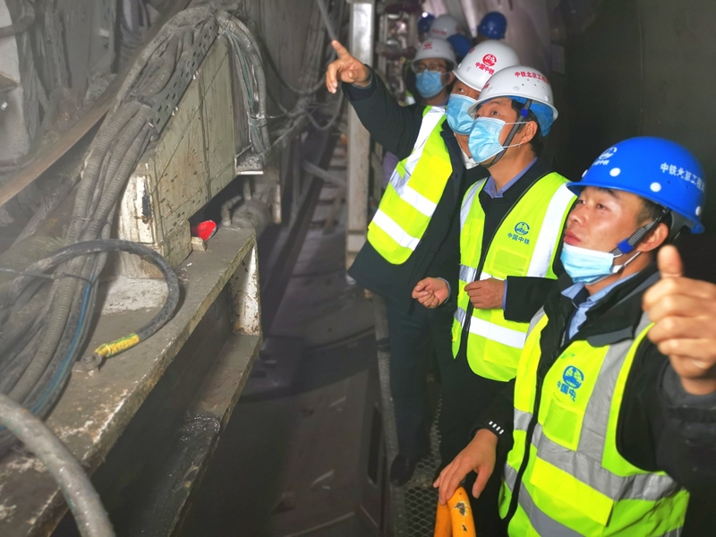 在焦广盈和董昊威的陪同下,焦胜军校长一行深入施工一线,进入到盾构机内部,参观盾构操作室,查看盾构机姿态等相关数据,详尽了解当前掘进情况,并走到机头部分,查看盾构前线的施工情况。盾构施工各环节负责人通过实际操作对施工过程中的刀盘开挖、管片拼装以及渣土输送进行了详细解说,同时对各位领导提出的渣土改良、管片壁后注浆等问题进行了答复。