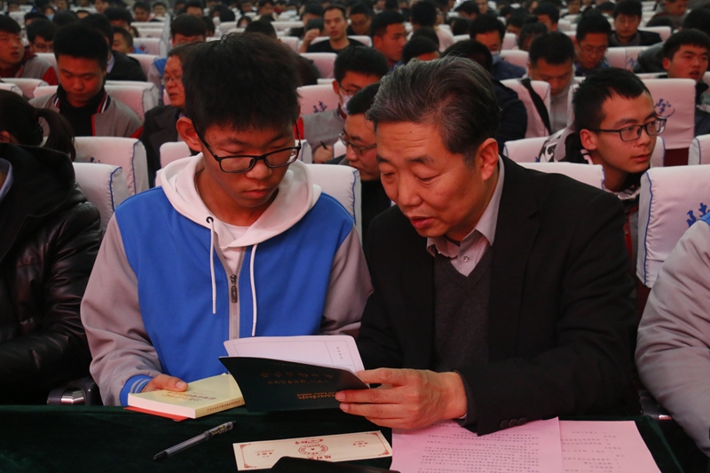 焦胜军校长向帮扶学生发放爱心款、赠送励志书籍