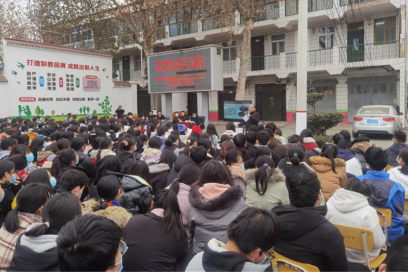 会上,王庆东作了《激发潜能再创辉煌—让我们在学习的道路上再出发》主题报告。他结合国家高职院校当前的就业形势和就业现状,介绍目前陕铁院毕业生就业趋向,工资待遇,工作前景等情况。鼓励学生规划好人生目标,好好学习,提前做好单招准备,报考就业前景好的高职院校。同时,欢迎同学们报考陕铁院。