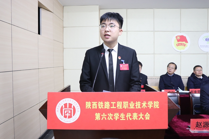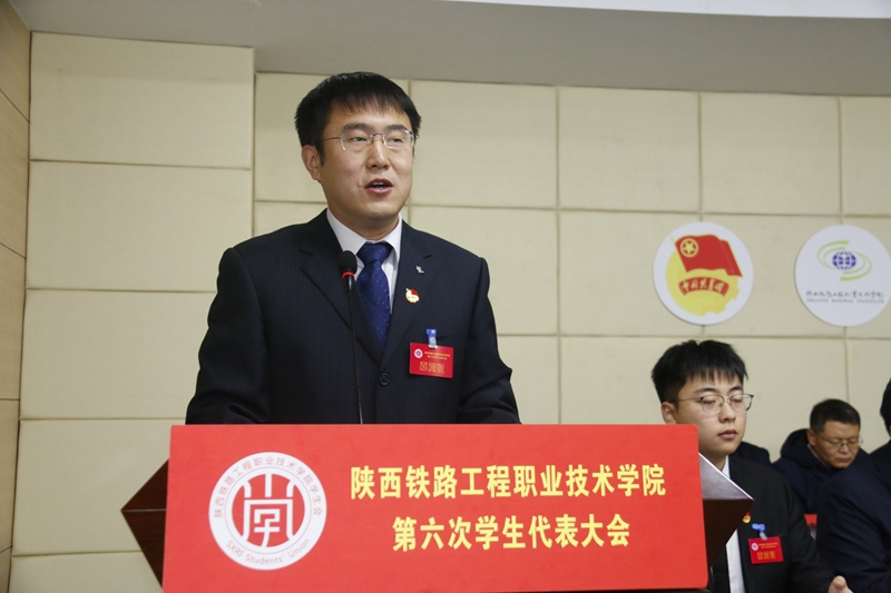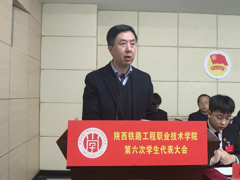 12月26日上午,陕西铁路工程职业技术学院第六次学生代表大会开幕式在高新校区诚信厅举行,校党委书记王津,省学联代表、学校党委组织部、党委宣传部、党委办公室,学生处、就业处、安保处负责人、各二级学院党总支书记出席了会议,渭南师范学院、渭南职业技术学院等兄弟院校代表、学校各二级学院团总支书记以及175名学生代表参加了开幕式。大会还共收到了华东交通大学大学学生会、西安建筑科技大学学生会、西安交通大学学生会、陕西财经职业技术学院学生会、陕西工业职业技术学院学生会等18所高校发来的贺信以及长安大学、陕西科技大学、西安石油大学、渭南师范学院、陕西国防职业技术学院、石家庄铁道大学等高校团委学生会,四川航空、西安市轨道交通集团、江西铜业集团有限公司等全国铁道团指委单位共50余家单位发来的贺电。开幕式由团委书记侯峰主持。