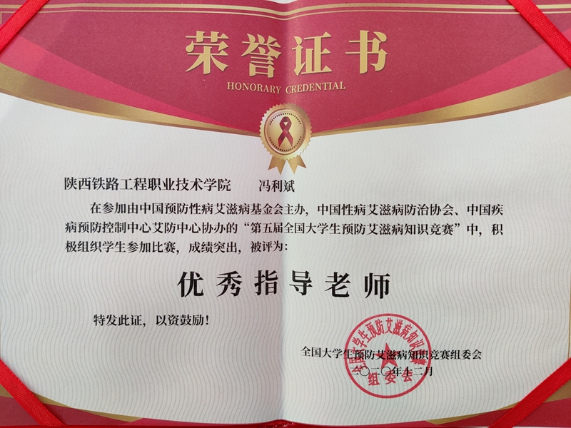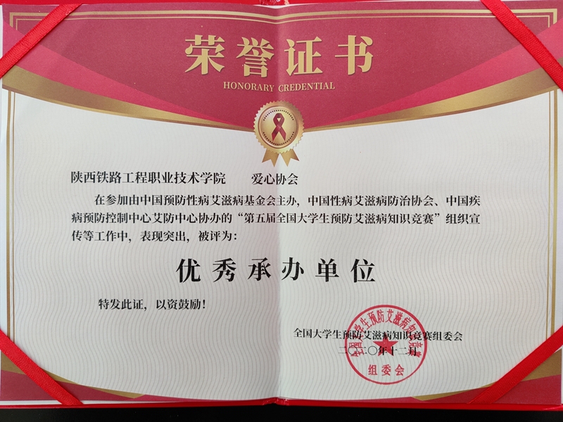 在协会老师的指导和协会成员的积极宣传下,高铁工程学院956名学生参与了知识竞赛,就艾滋病的症状、传播方式、流行状况、诊疗地点及出现症状,感染后接受国家免费规范治疗等知识点进行了学习和考试。学生出色的表现获得了竞赛组委会颁发的证书。因组织有力,学校爱心协会被评为优秀承办单位,指导老师冯利斌被评为第五届全国大学生预防艾滋病知识竞赛优秀指导老师。