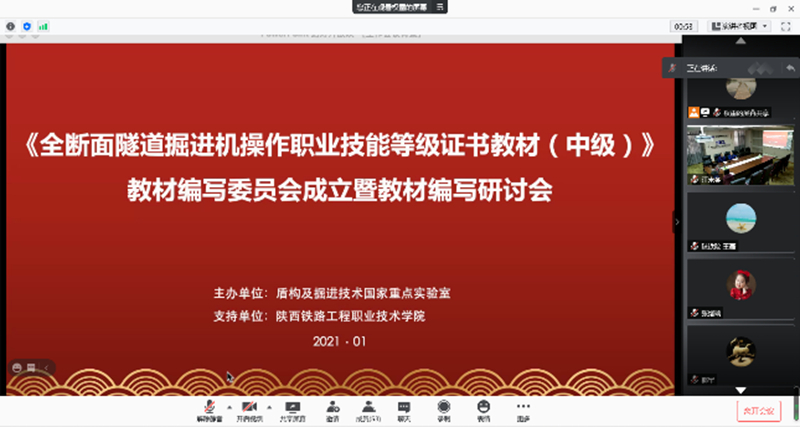为深入贯彻落实《国家职业教育改革实施方案》(国发[2019]4号)和《关于在院校实施“学历证书+若干职业技能等级证书”制度试点方案》(教职成[2019]6号)文件精神,根据《关于受权发布参与1+X 证书制度试点的第四批职业教育培训评价组织及职业技能等级证书名单的通知》(教职所[2020]257号)的文件要求,由盾构及掘进技术国家重点实验室发起,学校作为支持单位于1月29日启动召开《全断面隧道掘进机操作职业技能等级教程》编写暨成立教程编委会工作会议。