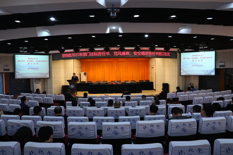 3月15日下午,学校在临渭校区学术报告厅举行2021年部门目标责任书、党风廉政、安全稳定责任书签订仪式。党委书记王津,校长焦胜军,党委副书记李林军、郑毅刚,副校长蒋平江、张学钢、贺建锋、祝和意和全体处科级干部参加会议。会议由校长焦胜军主持。