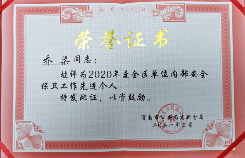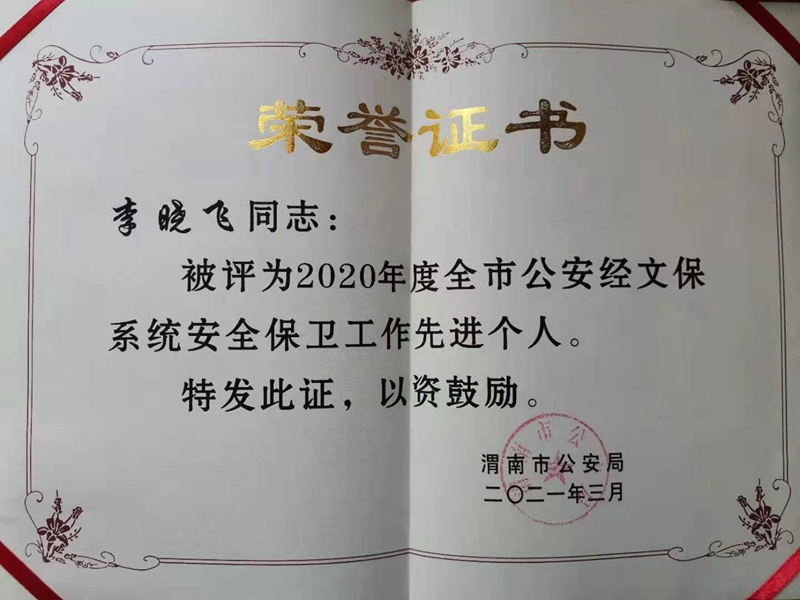 近日,学校先后被渭南市公安局临渭分局和渭南市公安局高新分局评为“2020年度全区经文保工作先进集体”和“2020年度全区经文保工作先进单位”,学校安全保卫处康江龙和乔梁两位同志获评渭南市临渭区和渭南市高新区“2020年度全区经文保工作先进个人”。同时,学校安全保卫处处长李晓飞被渭南市公安局评为“2020年度全市经文保工作先进个人”。