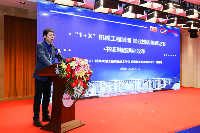 会议期间,南黄河被聘为国家“1+X”证书制度试点工作“机械工程制图职业技能等级证书”智库平台专家,参与标准编写,并在大会上作了“机械制图职业技能等级证书书证融通课程改革”专题报告。他讲解了机械工程制图职业技能等级证书的具体知识,证书分为初级、中级、高级三个等级,三个等级循序递进,高级别的技能证书分别涵盖低级别技能证书的要求;该技能证书主要针对于从事机械工程制图的相关工作,通过学习机械典型的工程图及其装配图的识读和测绘方法,各类工、量具,测绘典型机械的零部件,二级计算机绘图工具等相关知识,从而在从事机械工程制图相关工作方面时,保障能够高质量、高效率的完成工作。