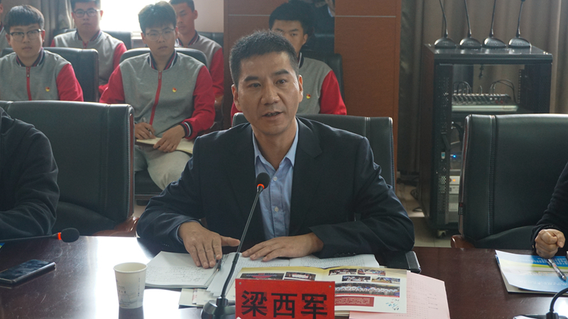 梁西军对学校秉承“德修身 技立业”的校训,紧密围绕为谁培养人,培养什么人,怎么培养人的根本问题建立的教育教学制度体系表示赞赏,他讲到学校的育人制度体系正是传承工匠精神的充分体现,与习近平总书记要求的要努力建设高素质的劳动大军非常的契合,他引用习近平总书记在全国劳动模范和先进工作者表彰大会上讲话对学校提出建议:要完善现代职业教育制度,创新各层次各类型职业教育模式,为劳动者成长创造良好条件。要完善和落实技术工人培养、使用、评价、考核机制,提高技能人才待遇水平,畅通技能人才职业发展通道,完善技能人才激励政策,激励更多劳动者特别是青年人走技能成才、技能报国之路,培养更多高技能人才和大国工匠。