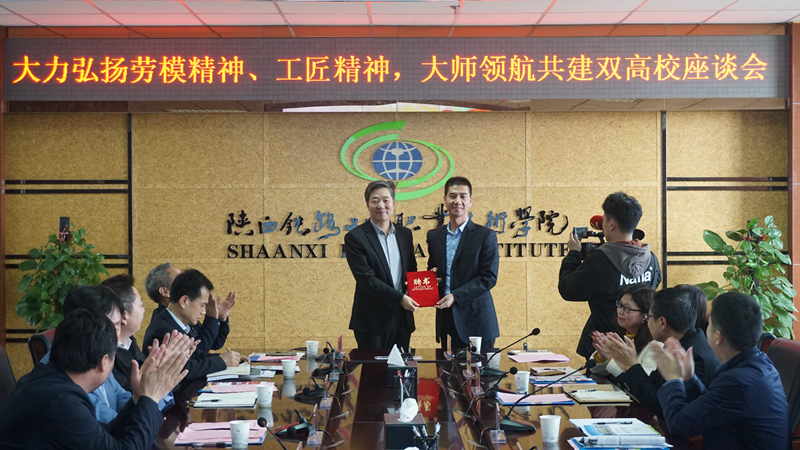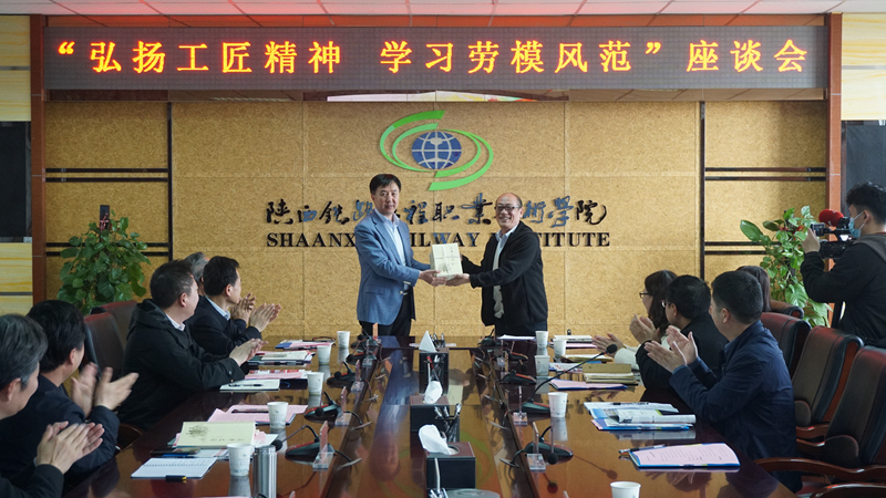 座谈会期间,窦铁成为学校赠送了由陕西总工会编撰的关于劳动模范感人故事的书籍,他希望同学们多读书读好书,用知识武装自己,用先进人物的精神激励自己。同时还举行铁路职业教育与产业发展研究院特聘专家聘任仪式,焦胜军为梁西军颁发客座教授聘书。