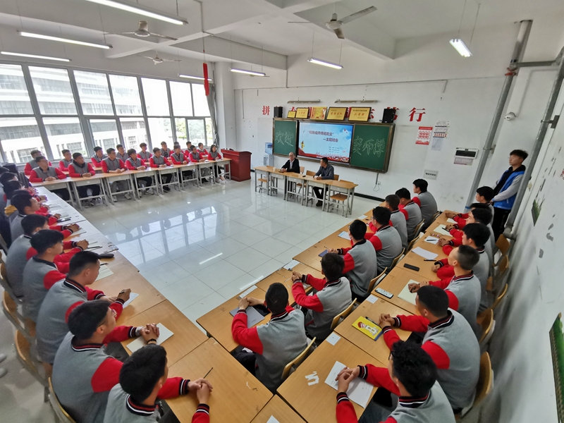 班会现场,窦铁成师傅结合自身的求学及工作经历,分享了自己在人生成长路上“关键节点”。鼓励即将毕业的大学生要抢抓时代机遇,适应职业要求,促进社会发展,要有一颗扎根一线的决心。鼓励大家积极响应习近平总书记号召,到祖国最需要的地方建功立业,主动融入新时代大发展的有利环境。