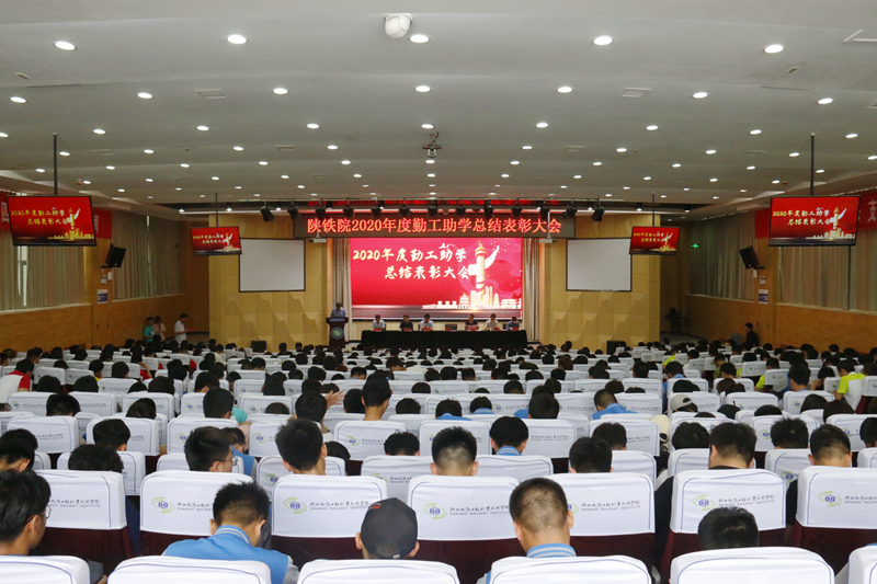5月11日下午,陕铁院2020年度勤工助学总结表彰大会在高新校区博爱厅举行,学校校长焦胜军出席会议,学生处负责人、各二级学院党总支书记、学工部门指导教师、全体辅导员、班主任、勤工助学学生及部分学生代表参加会议。会议由学生处资助管理中心主任雷彬主持。