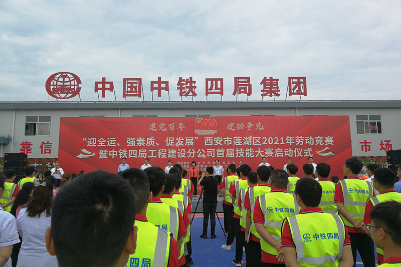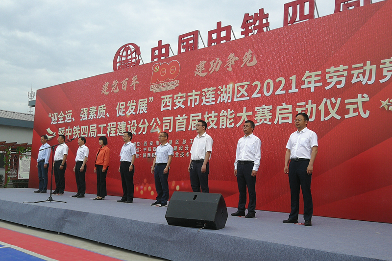 开幕式由中铁四局工程建设分公司工会主席朱恩胜主持,参加开幕式的还有中铁四局工程建设分公司党委书记江跃平、中铁四局工会生产保护部部长占苏龙、西安市莲湖区总工会党组书记、副主席,区劳竞委办公室主任张育军等领导以及来自公司各项目的62名参赛选手、26名裁判员及工人日报、陕西日报、西安电视台等新闻媒体。