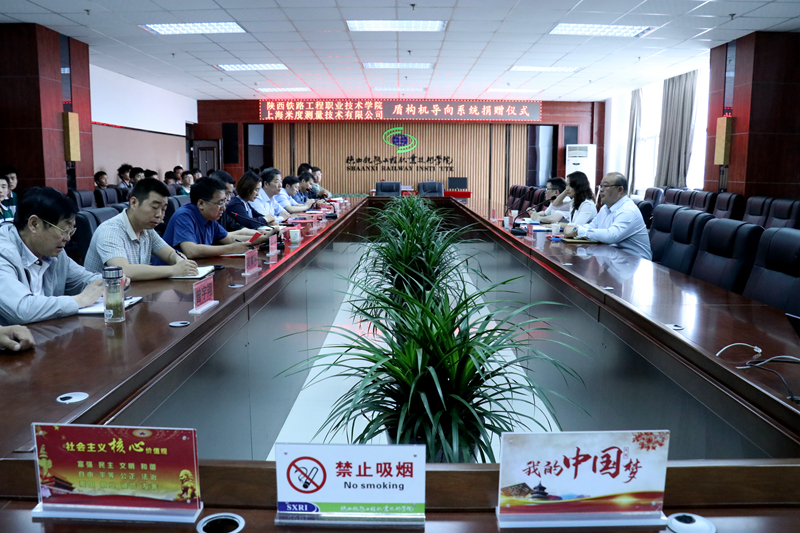 为贯彻落实《国家职业教育改革实施方案》(职教20条)高水平实训基地建设相关要求,持续推进校企深度合作,打造“三教”改革和产教融合育人高地,5月19日上午,学校和上海米度测量技术有限公司在高新校区北三楼会议室共同举行盾构机导向系统捐赠仪式。校长焦胜军、米度公司大客户经理李慧娟、产品经理覃旭、朱涛等出席会议,教务处、财务处、国资处等部门负责人及城轨工程学院师生参会,城轨学院贾良副院长主持仪式。