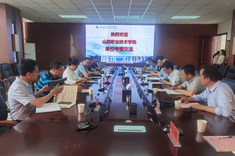 5月26日下午,山西职业技术学院副校长赤新生一行8人来校就高水平专业群建设及校园信息化建设等方面内容进行交流。学校党委副书记郑毅刚、副校长蒋平江出席接待座谈会。学校人事处、学生处、财务处、信息化与网络安全处、高铁工程学院、党政办等部门负责人参加座谈。座谈会由蒋平江主持。