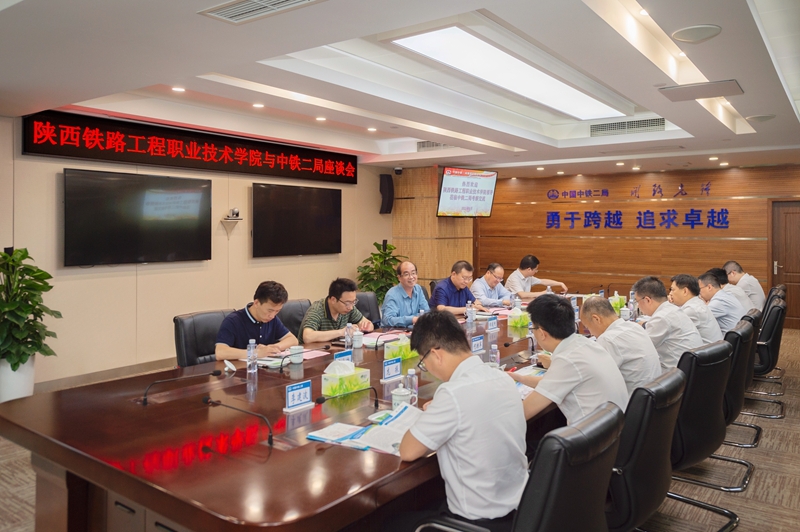 中国中铁二局集团有限公司副总经理张兵、副总工程师何拥军、副总经济师刘洪等人对调研组一行表示热烈欢迎,并带领调研组参观了公司荣誉室,随后双方围绕人才培养、技能培训、实践教学、科研课题等方面进行了深入交流。