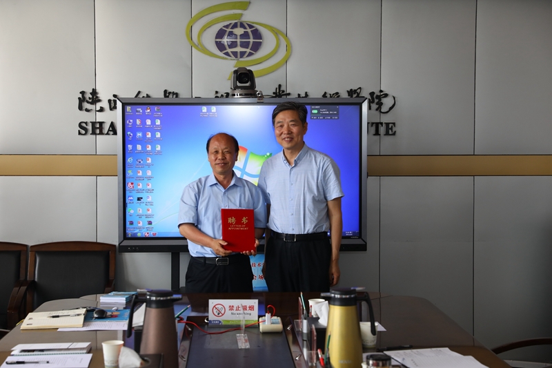 焦胜军校长为巨晓林劳模颁发客座教授聘书