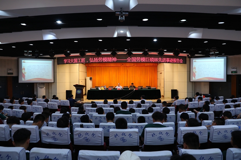 为大力弘扬劳模精神、劳动精神、工匠精神,6月8日下午,学校召开“弘扬劳模精神 助推高质量发展”座谈会,特邀“全国五一劳动奖章获得者”“国家级技能大师”“全国创先争优优秀共产党员”“全国劳动模范”“改革先锋”“新中国最美奋斗者”、党的十八大、十九大代表巨晓林来校作报告,学校校长焦胜军、党委副书记李林军、郑毅刚、副校长蒋平江、贺建锋、祝和意、工会主席车绪武等领导参会。会议共分两个阶段进行,蒋平江全程主持。