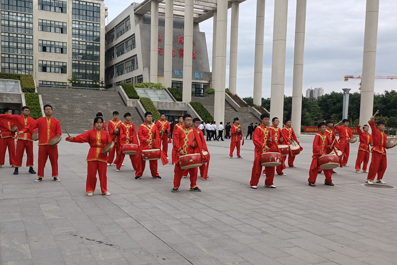 开幕式结束后,现场嘉宾和师生们一起观看高铁工程学院威风锣鼓队的精彩表演。(李博/文 崔创鑫/图)