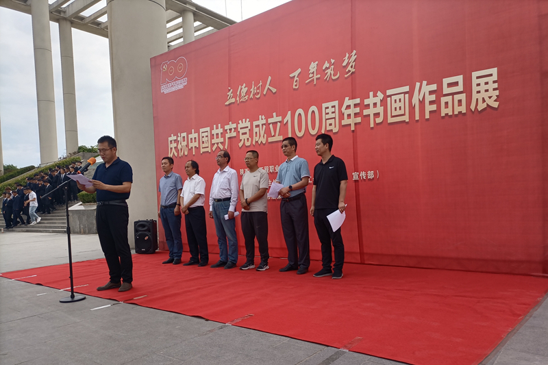 6月9日,由校团委、学工部、学生处、党委宣传部、工会及扶贫办联合举办,渭南高新区书法家协会承办的“立德树人 百年筑梦”——庆祝中国共产党成立100周年书画作品展在高新校区星光广场举行。学校党委副书记郑毅刚,党委委员、党委宣传部部长亢新河,渭南市书法家协会副主席兼秘书长陈龙,高新区书法家协会主席王拥军出席开幕式。学校学工部、扶贫办负责人,高新区书法家协会主席团成员,获奖作者、书法爱好者们及高新校区辅导员、学生代表参加开幕式并观看作品展。