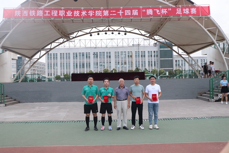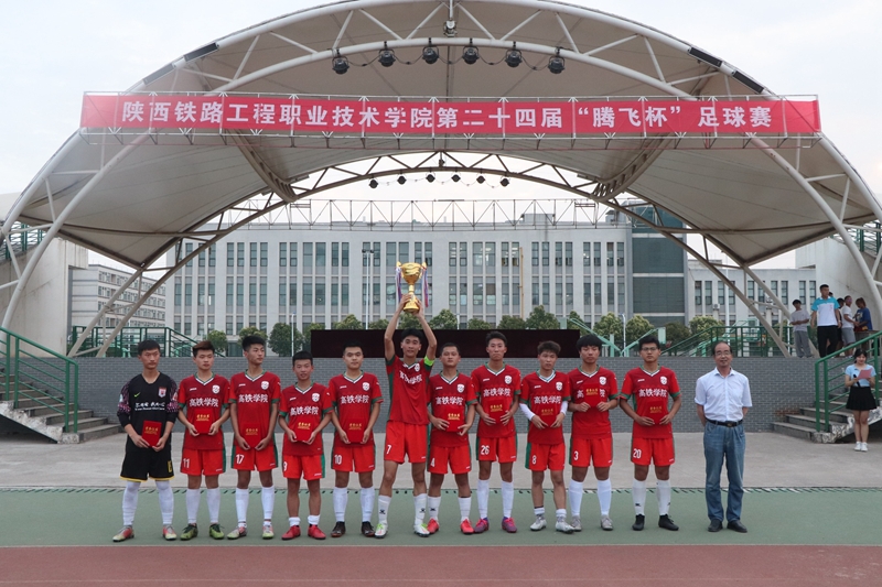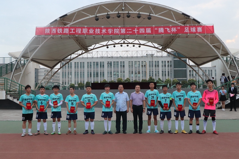 6月15日下午,第二十四届“腾飞杯”足球赛在学校高新校区足球场落下帷幕。经过九十分钟鏖战,高铁工程学院代表队以4:1的成绩战胜工程管理与物流学院代表队,成功捧得“腾飞杯”足球赛冠军奖杯,工程管理与物流学院代表队获得亚军,铁道装备制造学院代表队获得季军,工程管理与物流学院获得公平竞赛奖,铁道动力学院获得最具风尚奖,高铁工程学院代表队王超华同学凭借8粒进球荣获“最佳射手奖”。学院党委副书记郑毅刚,副校长贺建锋,工会主席车绪武,教学总督导杨云峰,学生处、体育教学部、团委以及相关学院负责人观看比赛并为获奖球队和个人颁奖。