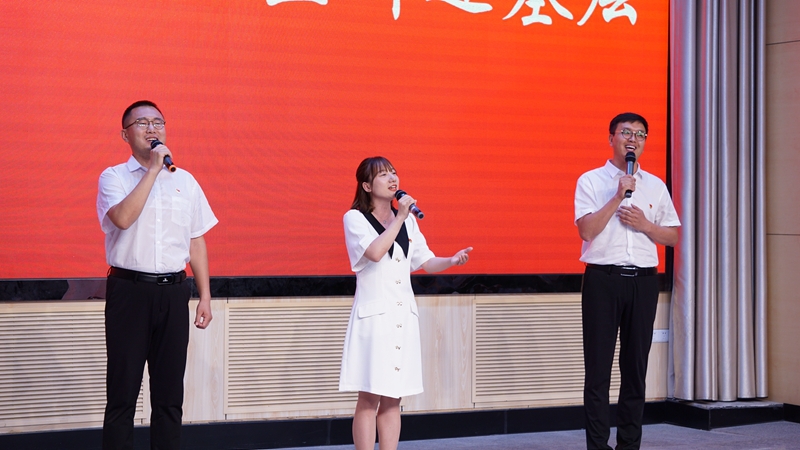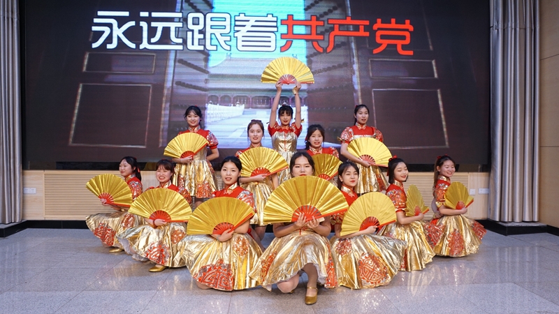 期间,学校教师侯峰、郭联俊、陈莎莎深情演唱了红歌《祖国万岁》,用真情感念党恩,用热情讴歌祖国,用激情唱响时代;学校工程管理与物流学院带来了富有节奏感的快板舞《铁院学子心向党》,生动讴歌党、讴歌祖国、讴歌人民、讴歌英雄,用弘扬正能量的作品诉说铁院学子的心声,抒发了对党的忠诚、对祖国和人民的热爱。
