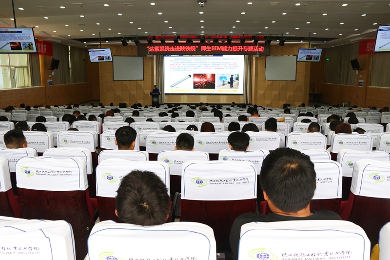 为助力学校“双高”建设任务落地落实,提升教师BIM技术服务能力和团队水平,有效开展BIM技术咨询服务、培训认证等工作,保障“1+X”建筑信息模型(BIM)职业技能等级证书(道桥市政类)考评工作的顺利进行,6月19日,BIM技术应用研究中心和高铁工程学院共同组织的“达索系统走进陕铁院”师生BIM能力提升专题活动在高新校区举行。学校副校长张学钢,从事BIM相关工作的教师、建设项目信息化管理专业学生及省内兄弟院校从事BIM工作的教师300余人参加学习交流活动。