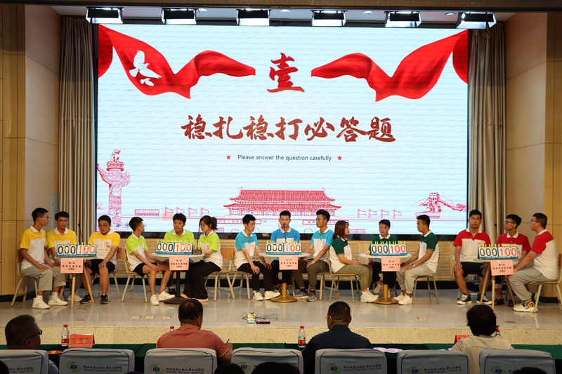 本次竞赛由稳扎稳打必答题、争先恐后抢答题、听曲识歌考验题、你谦我让多选题、读图说史题以及现场互动问答题等6个环节组成。稳扎稳打必答题环节,各参赛队精神抖擞,每位选手从容镇定,每次答题精准迅速,每队比分难分上下;争先恐后抢答题环节,各参赛队伍踊跃抢答,竞争激烈,现场氛围严肃紧张,台上比分你追我赶;听曲识歌考验题环节,学生乐师现场演奏红色歌曲,各代表队通过音乐判断歌曲名称,有的歌曲婉转悠扬、感人肺腑,有的激情饱满、潇洒豪迈,浸润着人们的心灵,激励着奋斗的青春。歌曲奏响时,台上选手凝神屏息仔细聆听,答对时引得全场掌声雷鸣,答错时台下观众惋惜不已。这一环节充分展现了红色歌曲的强烈艺术感染力,发挥着独特的育人功能;你谦我让多选题环节,题目难度加大,抢到答题权的队伍可以选择己方答题,也可指定其他队伍答题,答对加分,答错扣分。此环节既考察参赛选手的理论功底、知识基础,也考察了参赛团队的应对策略、比赛技巧,将知识性、趣味性、竞技性、策略性完美结合,这一环节参赛队伍你来我往、巧斗智夺,比分拉开距离;读图说史题环节,大屏幕推送党史经典图片,各小组抢到后,依图讲述党史故事,每个故事振奋精神,砥砺意志;现场互动问答题环节将竞赛气氛再次推向高潮,主持人发布题目,台下观众争相抢答,全场师生在快乐的氛围中接受了党史教育。