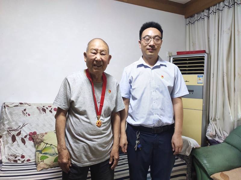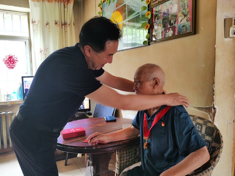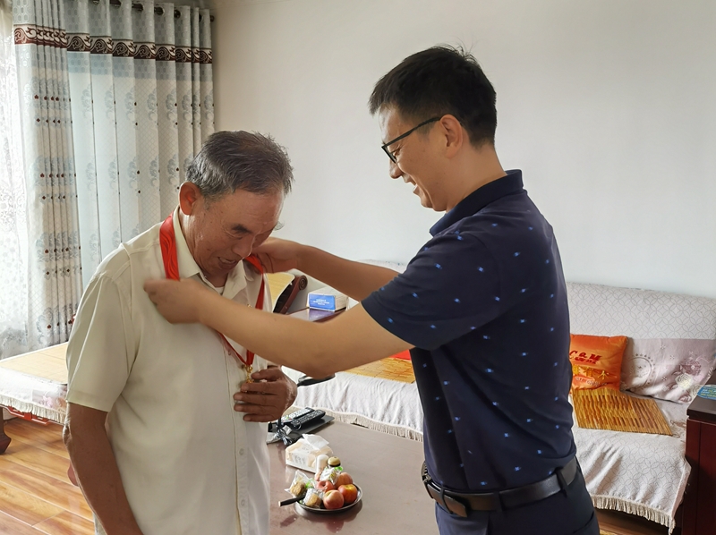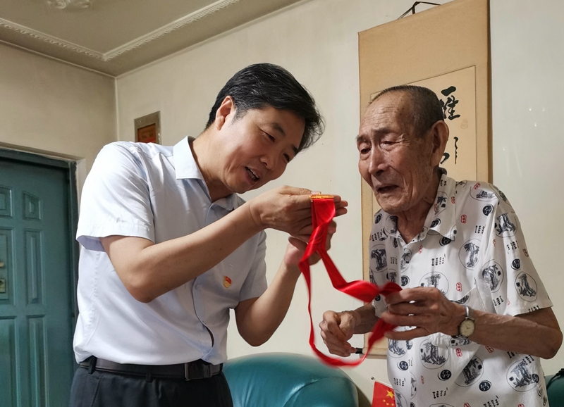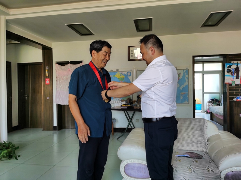 贺建锋副校长为老党员姜三过佩戴纪念章