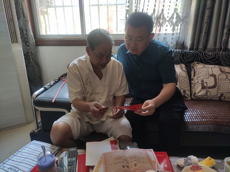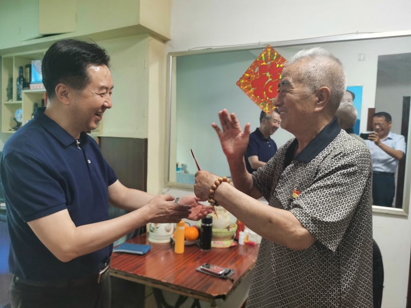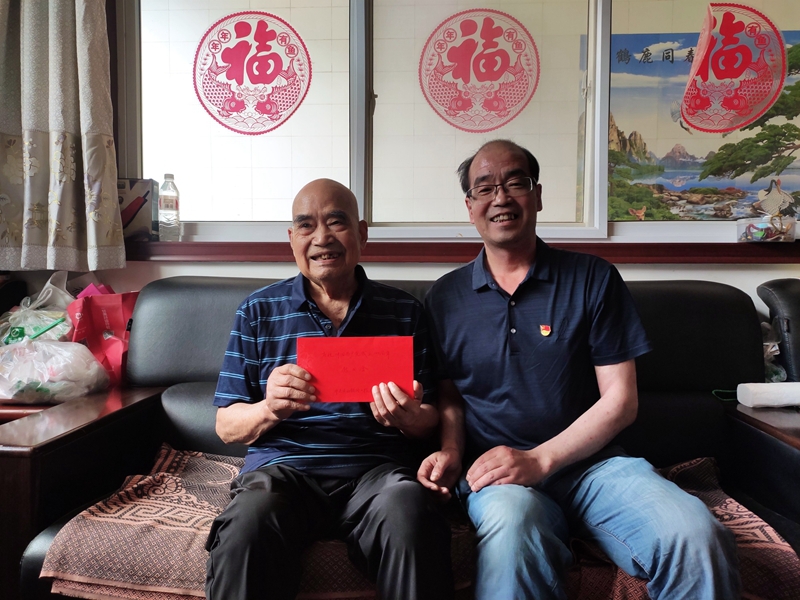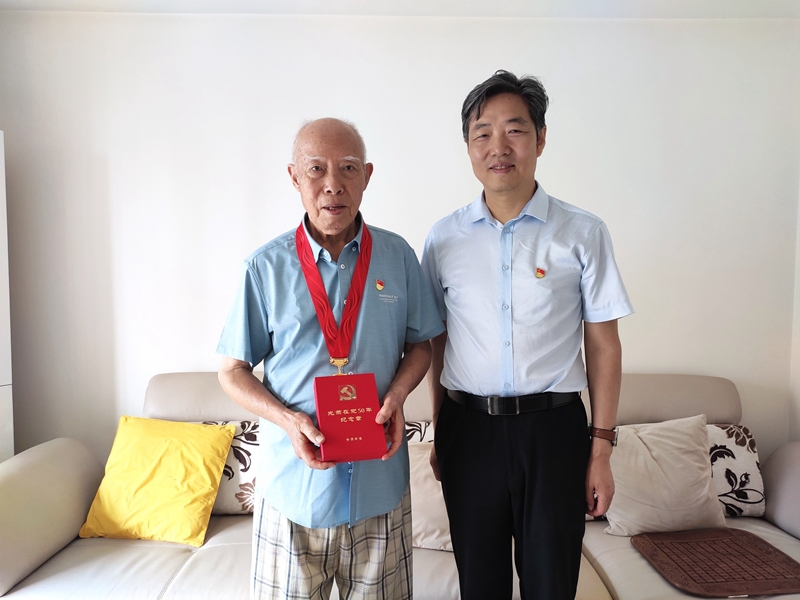 在喜庆中国共产党成立100周年之际,校领导班子成员带领组织部、人事处、离退休办等部门工作人员登门看望学校17名光荣在党50年的老党员,为他们佩戴党徽和中共中央颁发的“光荣在党50年纪念章”,并送上学校发放的慰问金。