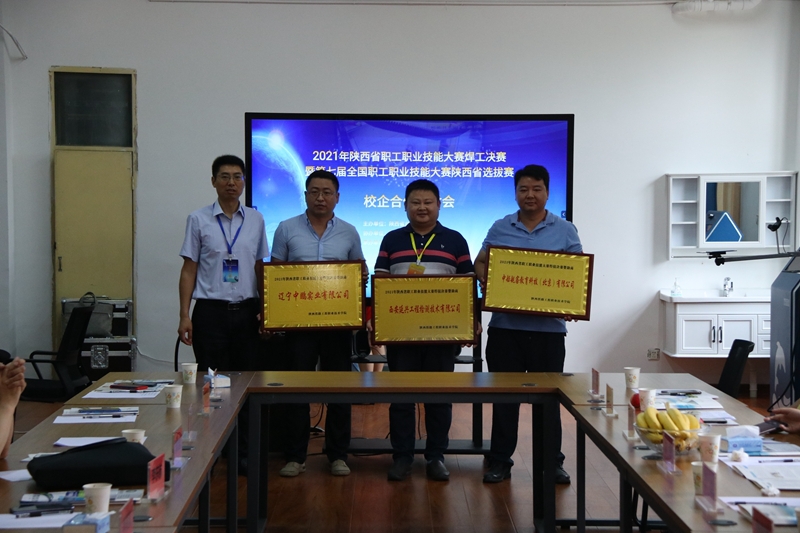 比赛期间,学校还开展了以“校企合作促发展,互利共赢谋大局”为主题的校企合作研讨会。陕西省职工技术协作办公室主任贺娟,铁道装备制造学院院长南黄河、党总支书记李强、副院长陈永峰、焊接教研室主任李娜以及20余家企业代表参加了研讨会。研讨会上,李强致欢迎辞,并对学院的基本概况做了介绍。贺娟高度评价本次大赛,表示各参赛队队员具有很高的技术水平,提出应借此机会加强校企合作、促进企业与企业之间切磋交流。陈永锋对学院的科研、技术服务和社会培训做了重点介绍,希望与企业加强沟通联系,开展相关合作。李娜从课程设置、师资配备、教学组织方面对焊接专业人才培养方案进行交流。会上各企业单位参会代表从人才需求、培训需求等方面做了充分的交流并对学院焊接专业人才培养提出宝贵建议,多家企业代表表示希望与学院成为战略合作伙伴,且意愿强烈。研讨会结束后,学院对本次赛事给予支持的相关企业举行授牌仪式,南黄河进行总结发言,此次校企合作研讨会的举行有效促进了校企文化交流,达到聚焦专业、凝聚共识、促进合作、共谋发展的最终目的。
