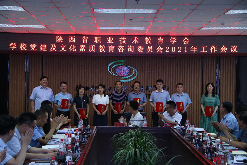 7月16日下午,陕西省职业技术教育学会学校党建及文化素质教育咨询委员会2021年工作会议在陕铁院高新校区召开。来自全省17所高职学校的34名党建工作负责人及业务骨干参加了会议。学校党委书记、委员会主任委员王津出席会议并讲话,党委副书记、纪委书记黎炜,副校长祝和意,以及党委组织部、党委宣传部、各党总支相关人员参加了会议,会议由党委委员、副校长祝和意主持。